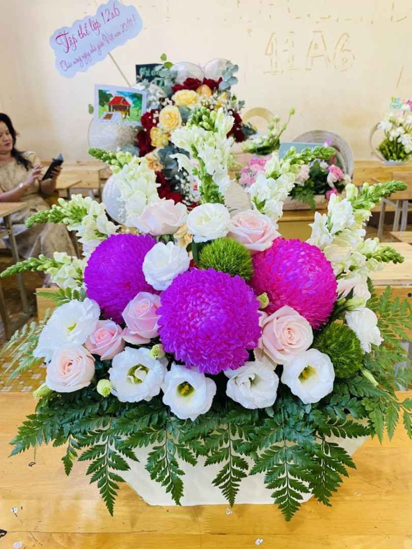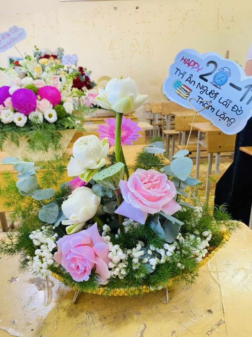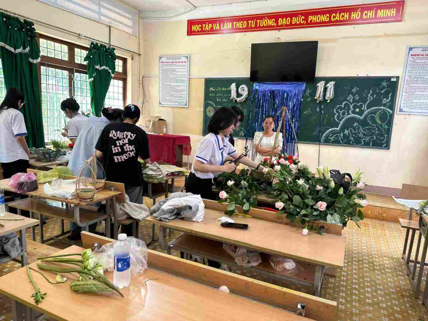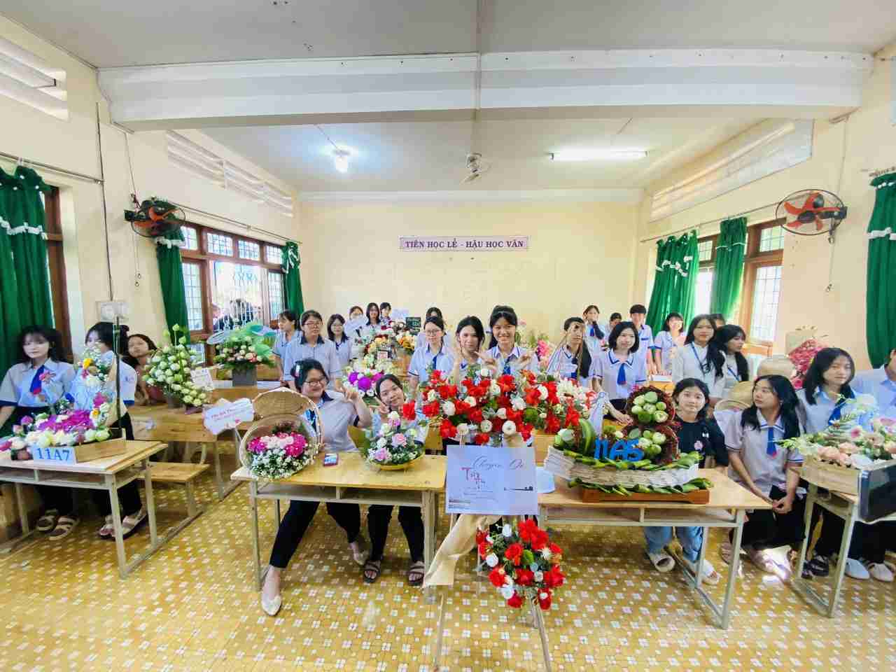 Hội thi thu hút sự tham gia sôi nổi của các lớp, với nhiều tác phẩm sáng tạo, mang ý nghĩa sâu sắc về tình thầy trò, sự tri ân và lòng biết ơn. Mỗi lẵng hoa không chỉ đẹp về hình thức mà còn chứa đựng thông điệp chân thành mà học sinh muốn gửi đến thầy cô.